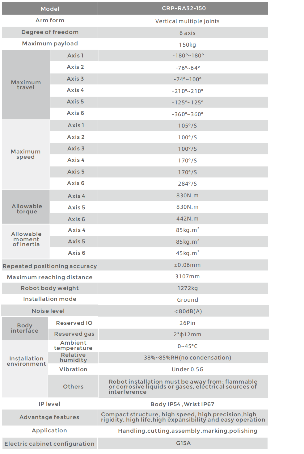 • The arm span is 3.2 meters, high rigidity,strong load capacity, more stable operation, and the load capacity is 150kg, which is about 15% higher than the previous generation.