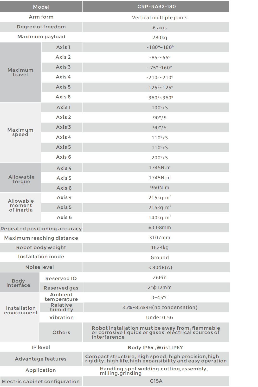 • The robot body can be configured Φ 12 double circuittrachea to meet the needs of welding and handling.