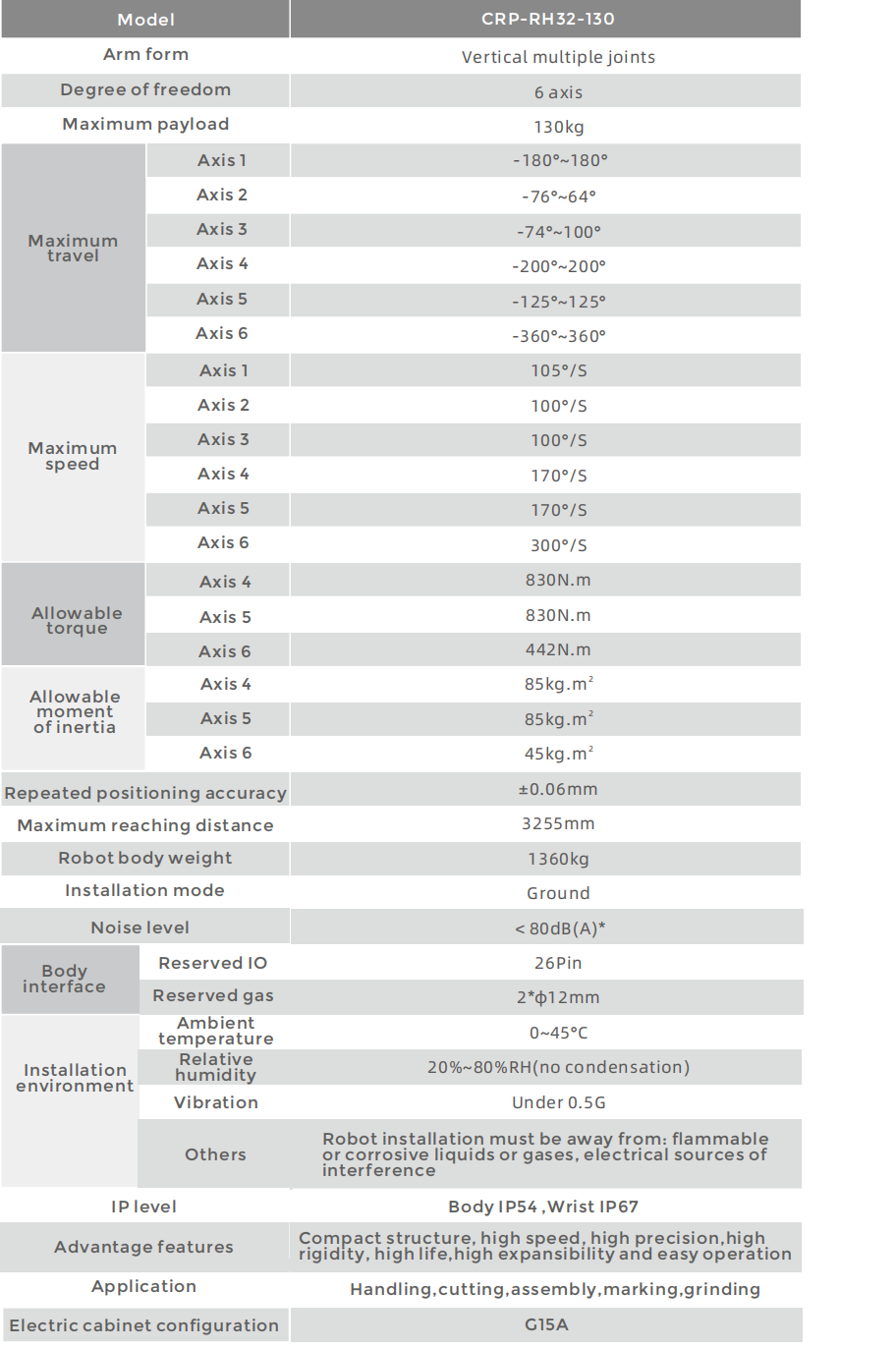 • Adopt a hollow arm structure and built-in wrist cable, without considering the interference caused by the external winding mode with the neighboring robotor peripheral equipment.