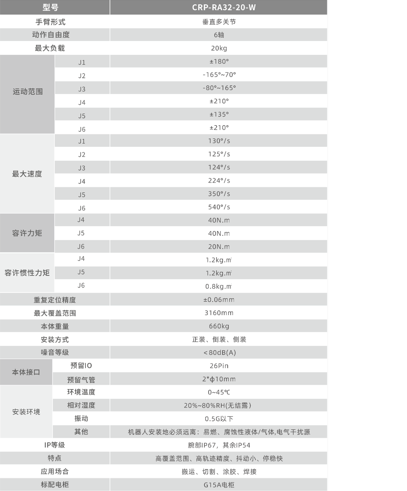 • 运行速度快,重复定位精度高,适用于切割、搬运、焊接等应用场景,适用范围广。