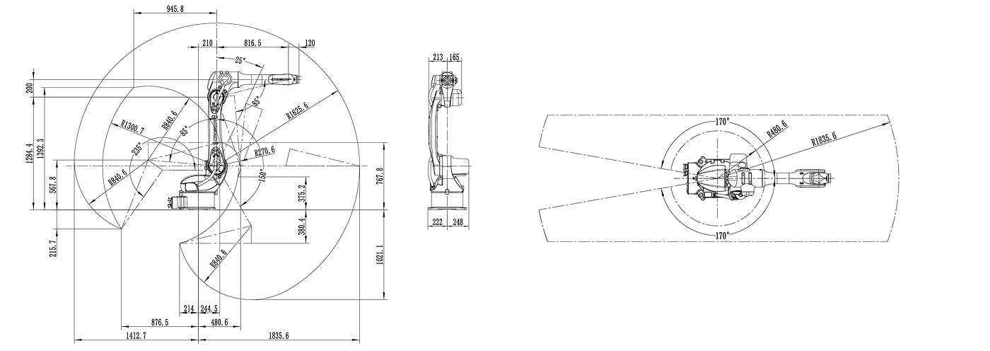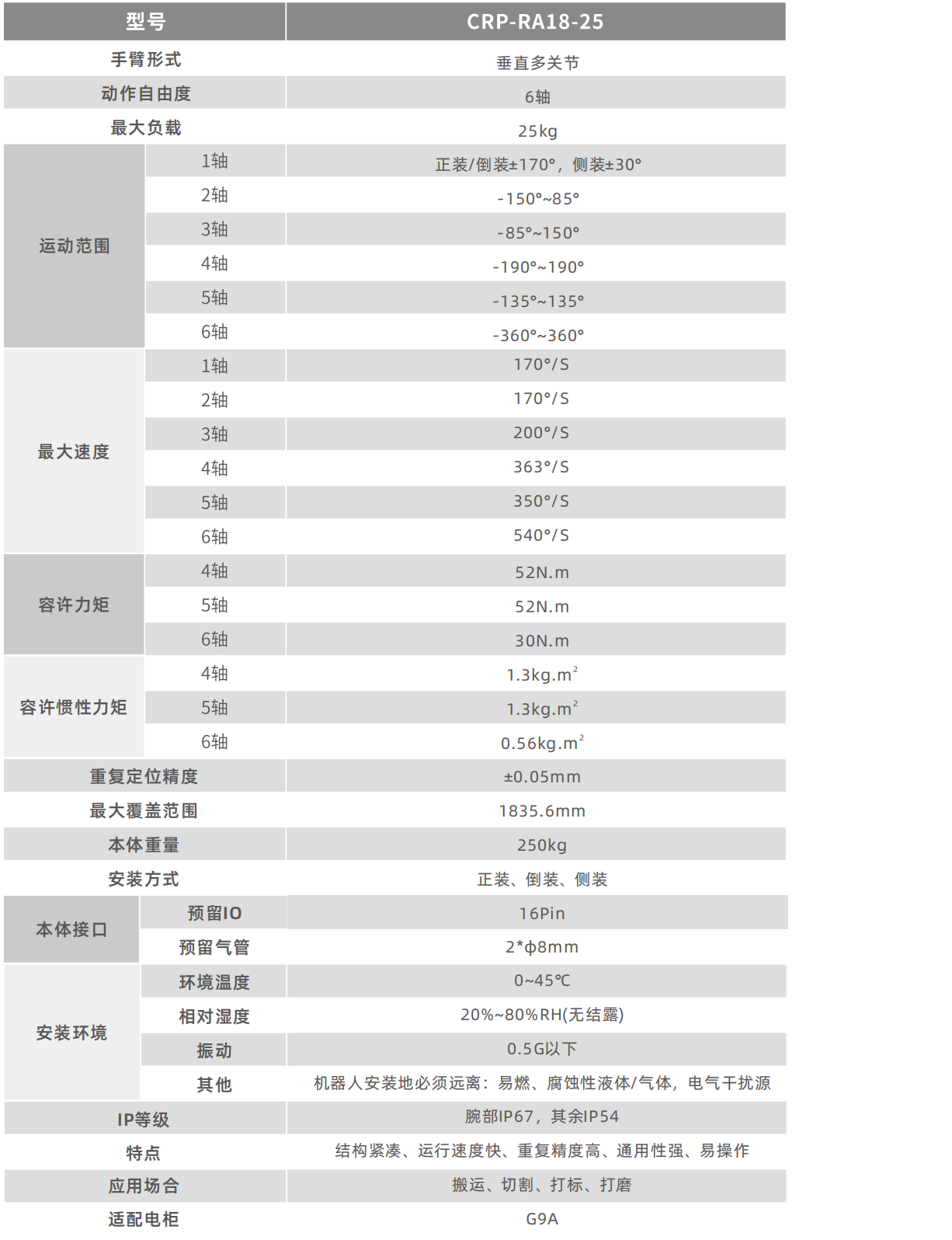 • 机器人整体结构高度紧凑、轻量化,更加轻巧适用,尤其腕部更加小巧,满足更多的场景。